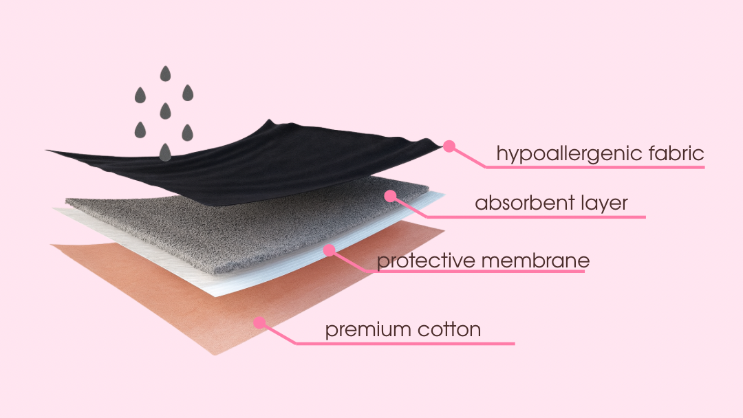 Менструальна білизна виглядає та відчувається як звичайна, але має вбудовані абсорбуючі шари, які збирають менструальну рідину та допомагають запобігати протіканням.
